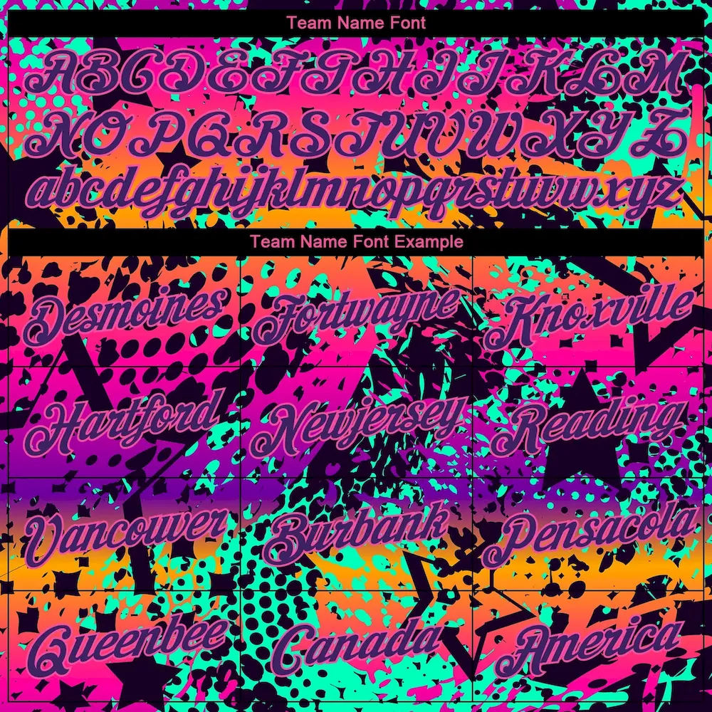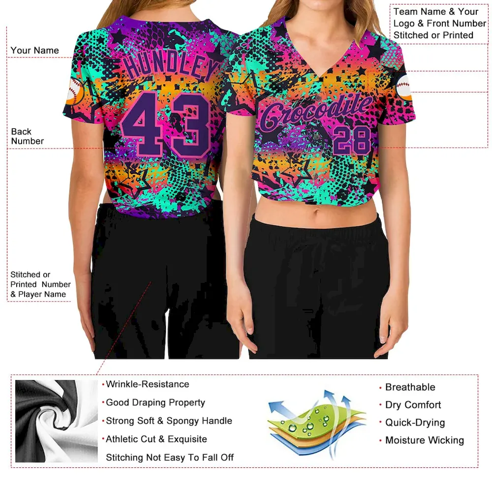 Custom Women’s Graffiti Pattern Purple-Pink Bright Neon Colors 3D V-Neck Cropped Baseball Jersey