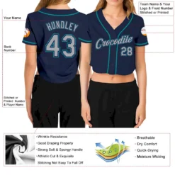 Custom Women’s Navy Gray-Aqua V-Neck Cropped Baseball Jersey