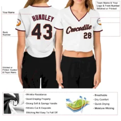 Custom Women’s White Black Crimson-Cream V-Neck Cropped Baseball Jersey