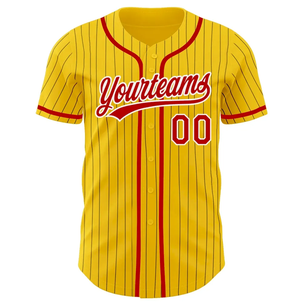 Custom Yellow Black Pinstripe Red-White Authentic Baseball Jersey