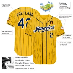 Custom Yellow Navy Pinstripe Navy-White Authentic Baseball Jersey