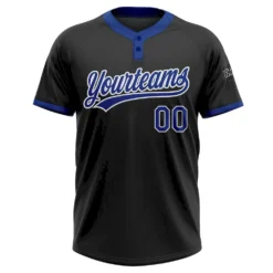 Custom Black Royal-White Two-Button Unisex Softball Jersey
