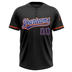 Custom Black Royal-Orange Two-Button Unisex Softball Jersey