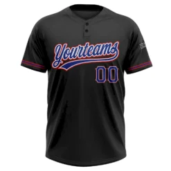 Custom Black Royal-Red Two-Button Unisex Softball Jersey