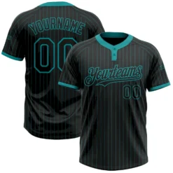 Custom Black Teal Pinstripe Teal Two-Button Unisex Softball Jersey