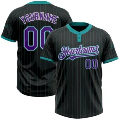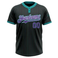 Custom Black Teal Pinstripe Purple-White Two-Button Unisex Softball Jersey