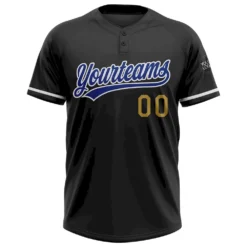 Custom Black Royal-Old Gold Two-Button Unisex Softball Jersey
