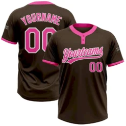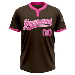 Custom Brown Pink-White Two-Button Unisex Softball Jersey