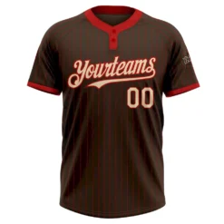 Custom Brown Red-Cream Two-Button Unisex Softball Jersey