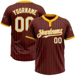 Custom Burgundy Gold Pinstripe White Two-Button Unisex Softball Jersey