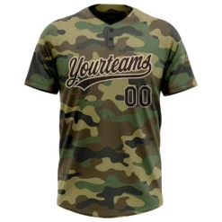 Custom Camo Brown-Cream Salute To Service Two-Button Unisex Softball Jersey