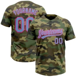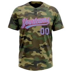 Custom Camo Light Blue-Pink Salute To Service Two-Button Unisex Softball Jersey