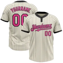 Custom Cream Black Pinstripe Pink Two-Button Unisex Softball Jersey