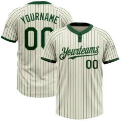 Custom Cream Green Pinstripe Green Two-Button Unisex Softball Jersey
