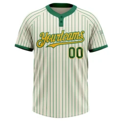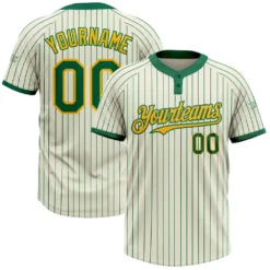 Custom Cream Green Pinstripe Gold Two-Button Unisex Softball Jersey