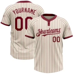 Custom Cream Crimson Pinstripe Crimson Two-Button Unisex Softball Jersey