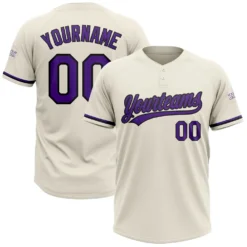 Custom Cream Purple-Black Two-Button Unisex Softball Jersey