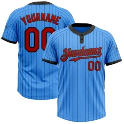 Custom Electric Blue Black Pinstripe Red Two-Button Unisex Softball Jersey