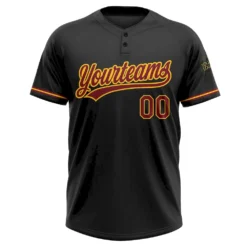 Custom Black Gold-Red Gradient Fashion Two-Button Unisex Softball Jersey