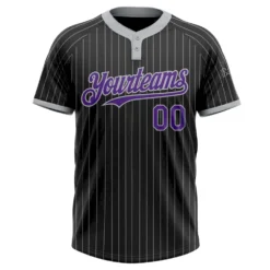 Custom Black Gray Pinstripe Purple Two-Button Unisex Softball Jersey