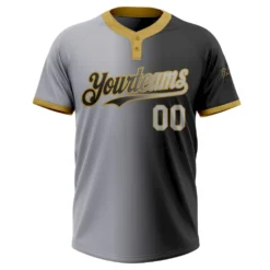 Custom Black Gray-Old Gold Gradient Fashion Two-Button Unisex Softball Jersey