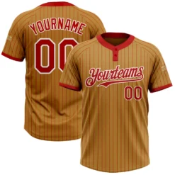 Custom Old Gold Black Pinstripe Red Two-Button Unisex Softball Jersey