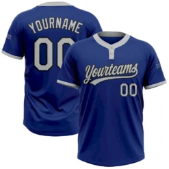 Custom Royal Gray-Black Two-Button Unisex Softball Jersey