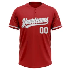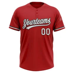 Custom Red White-Gray Two-Button Unisex Softball Jersey