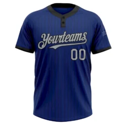 Custom Royal Black Pinstripe Gray Two-Button Unisex Softball Jersey