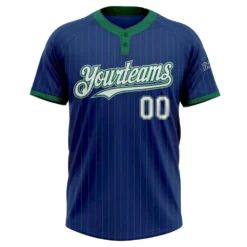 Custom Royal Kelly Green Pinstripe White-Gray Two-Button Unisex Softball Jersey