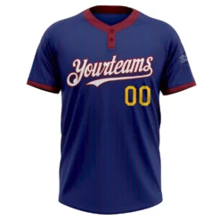 Custom Royal Crimson Pinstripe Yellow-White Two-Button Unisex Softball Jersey