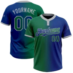 Custom Royal Kelly Green-Gray Gradient Fashion Two-Button Unisex Softball Jersey
