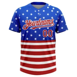 Custom Royal Red-White 3D American Flag Fashion Two-Button Unisex Softball Jersey