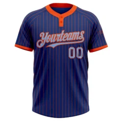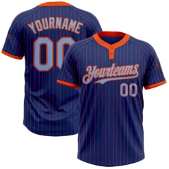 Custom Royal Orange Pinstripe Light Blue Two-Button Unisex Softball Jersey