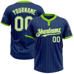 Custom Royal Neon Green Pinstripe White Two-Button Unisex Softball Jersey