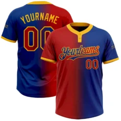 Custom Royal Red-Gold Gradient Fashion Two-Button Unisex Softball Jersey