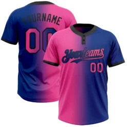 Custom Royal Pink-Black Gradient Fashion Two-Button Unisex Softball Jersey