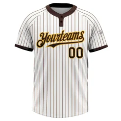 Custom White Brown Pinstripe Gold Two-Button Unisex Softball Jersey