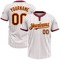 Custom White Crimosn Pinstripe Gold Two-Button Unisex Softball Jersey
