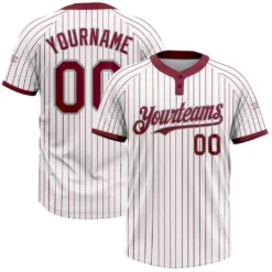 Custom White Crimosn Pinstripe Gray Two-Button Unisex Softball Jersey