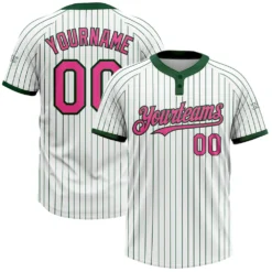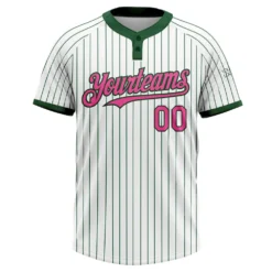 Custom White Green Pinstripe Pink Two-Button Unisex Softball Jersey