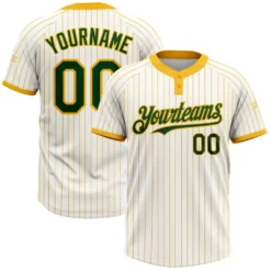 Custom White Gold Pinstripe Green Two-Button Unisex Softball Jersey