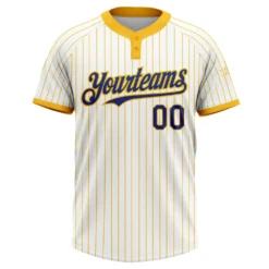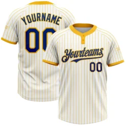 Custom White Gold Pinstripe Royal Two-Button Unisex Softball Jersey