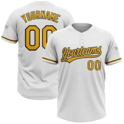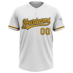 Custom White Gold-Black Two-Button Unisex Softball Jersey