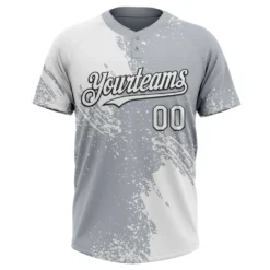 Custom White Gray-Black 3D Pattern Abstract Brush Stroke Two-Button Unisex Softball Jersey