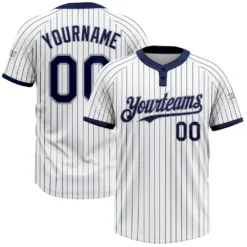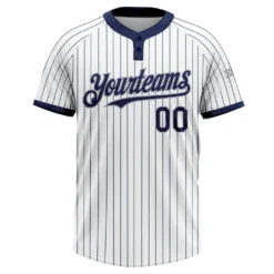 Custom White Navy Pinstripe Gray Two-Button Unisex Softball Jersey