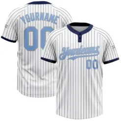 Custom White Navy Pinstripe Light Blue-Gray Two-Button Unisex Softball Jersey