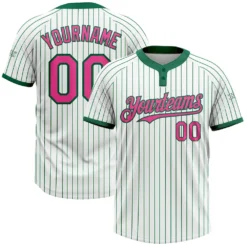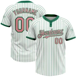 Custom White Kelly Green Pinstripe Medium Pink Two-Button Unisex Softball Jersey