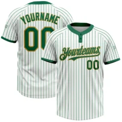 Custom White Kelly Green Pinstripe Gold Two-Button Unisex Softball Jersey