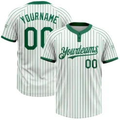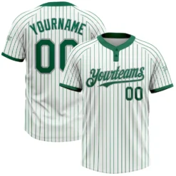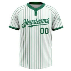Custom White Kelly Green Pinstripe Kelly Green Two-Button Unisex Softball Jersey